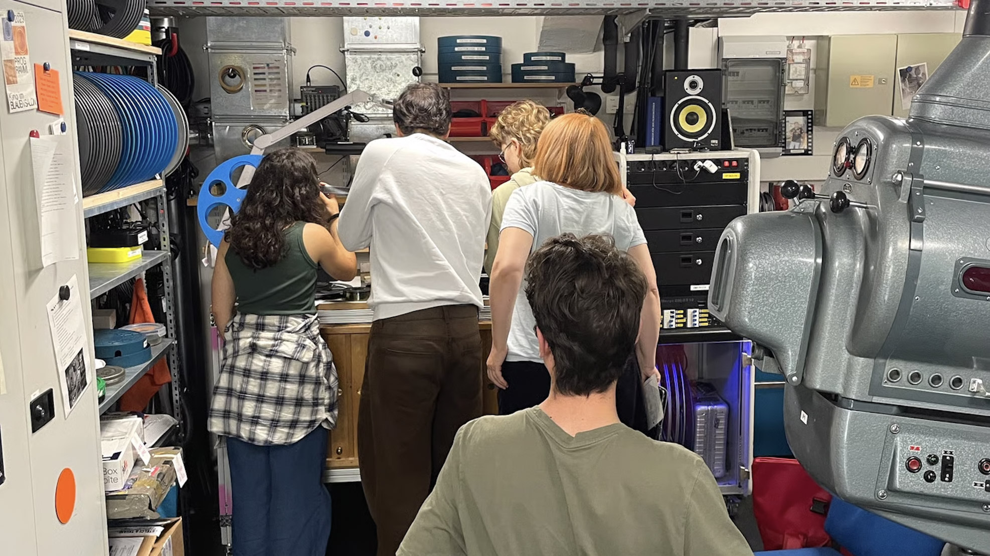 Last Saturday, our 35mm workshop took place in the Blue Salon – a colorful mix of technology, mishaps, and lots of fun! The participants, who had no previous experience, learned everything important about analog film projection: from the start band to film orientation to sound cleaning – and why it shouldn't get on the screen...